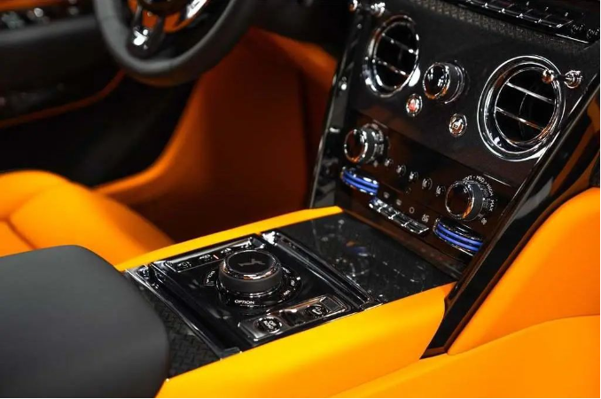 车内也是魅力十足的深黑色,和跳跃橘色搭配,有很强的视觉冲击力。